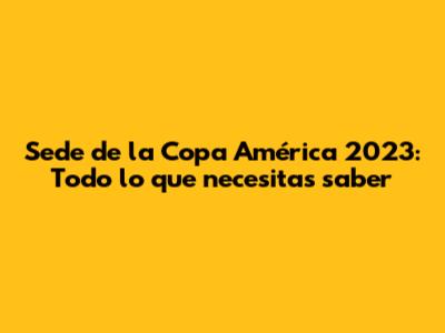 Sede De La Copa América 2023: Todo Lo Que Necesitas Saber